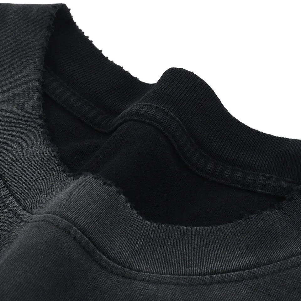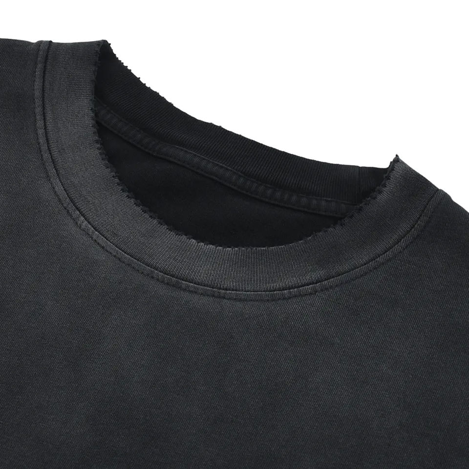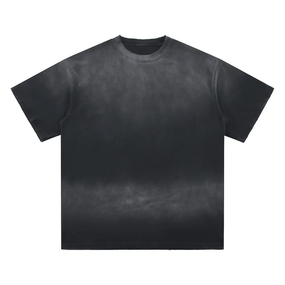 เสื้อยืดพิมพ์ลายวินเทจแบบย้อมสีเอซิด โลโก้สั่งทำ ผ้าคอตตอนหนา 100% ทรงบ็อกซี่ ตัดเย็บขอบดิบ ผ้าเจอร์ซีย์เนื้อหนา ซันเฟด