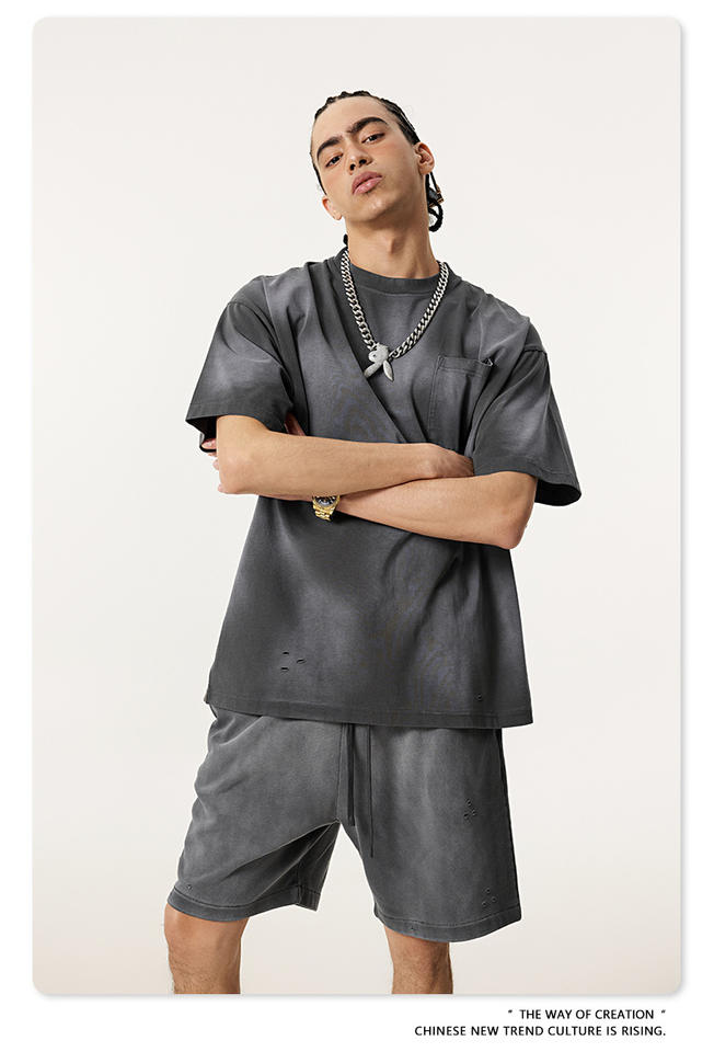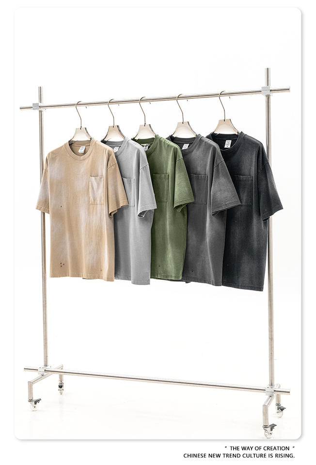 เสื้อยืดคอกลมทรงโอเวอร์ไซส์ ผ้าถักลายบาติกวินเทจ ปักโลโก้ตามสั่ง ย้อมสีซีดแบบดิสเทรส ซักแบบวินเทจ ผ้าหนา ทนทาน สำหรับผู้ชาย