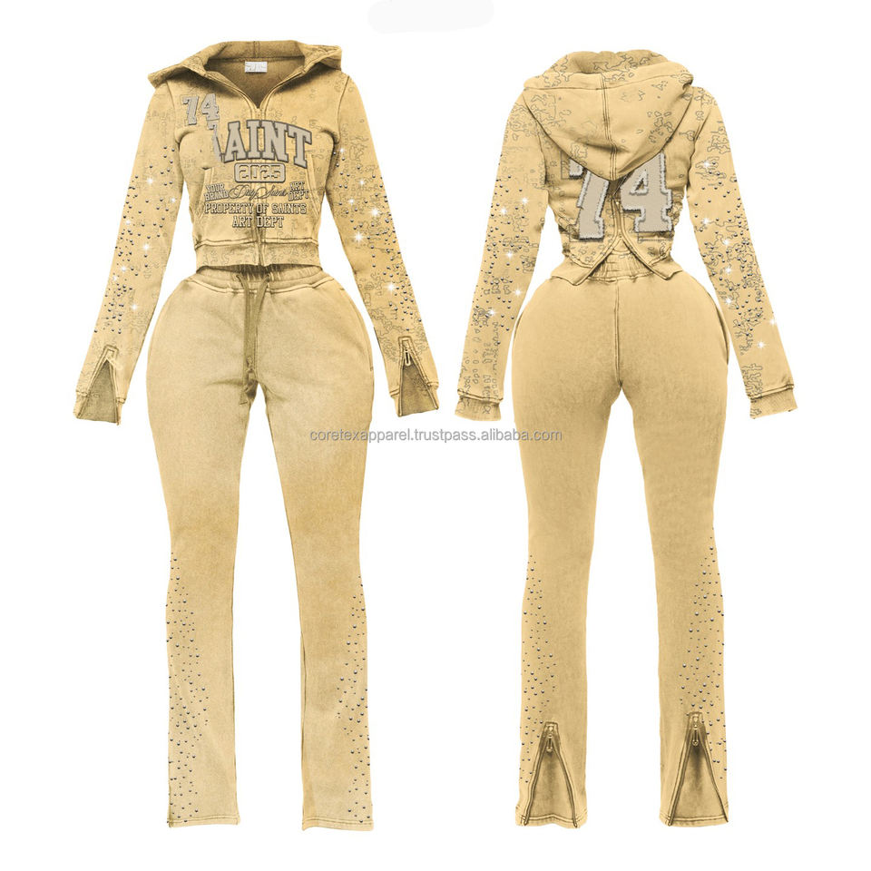 ชุดฮู้ดดี้ปักลายโลโก้แบบวินเทจสไตล์ดิสเทรส ประดับด้วยคริสตัล ล้างสีแบบแอซิดวอช สไตล์ซันเฟด ทรงโอเวอร์ไซส์ สำหรับผู้ชาย