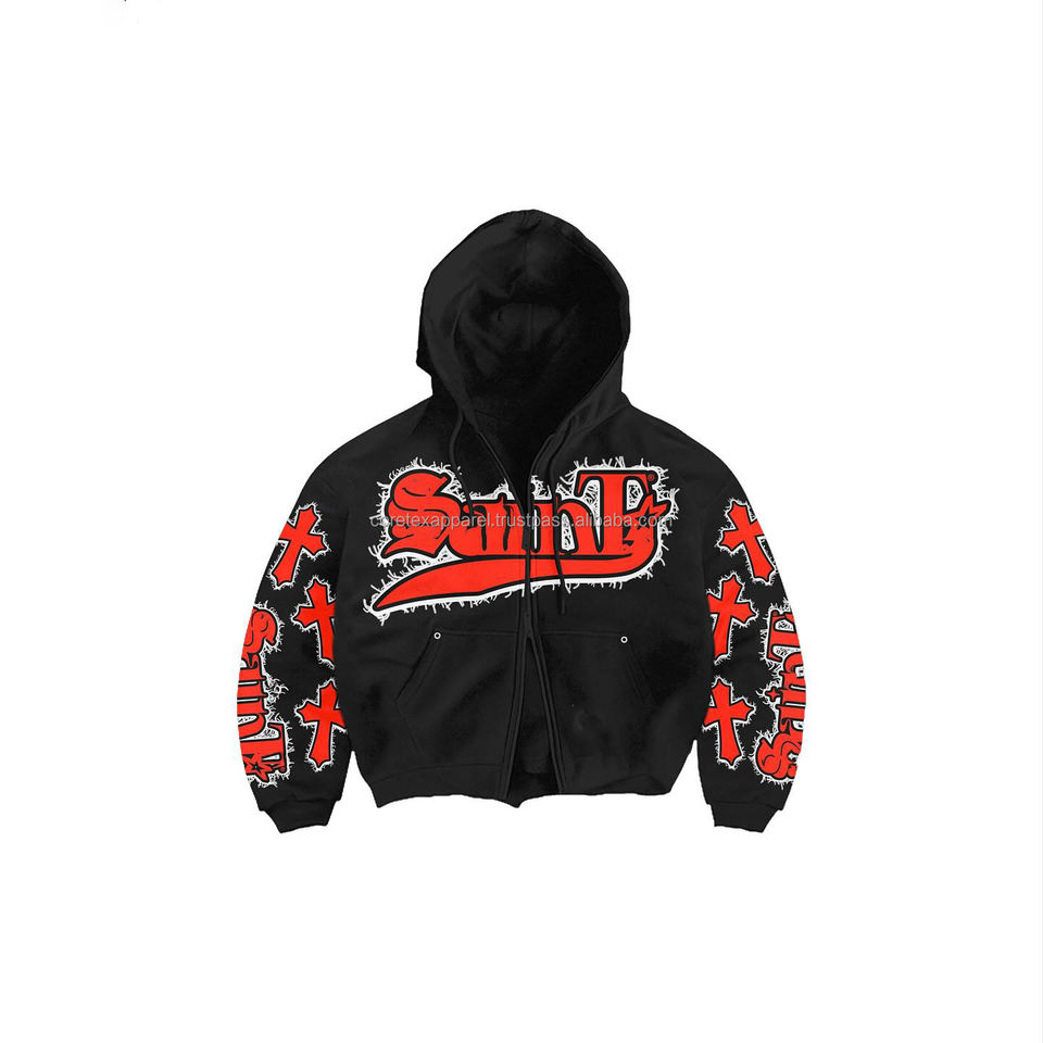 ชุดฮู้ดดี้ปักลายโลโก้แบบวินเทจสไตล์ดิสเทรส ประดับด้วยคริสตัล ล้างสีแบบแอซิดวอช ซีดจางสไตล์ซันเฟด ทรงโอเวอร์ไซส์ สำหรับผู้ชาย