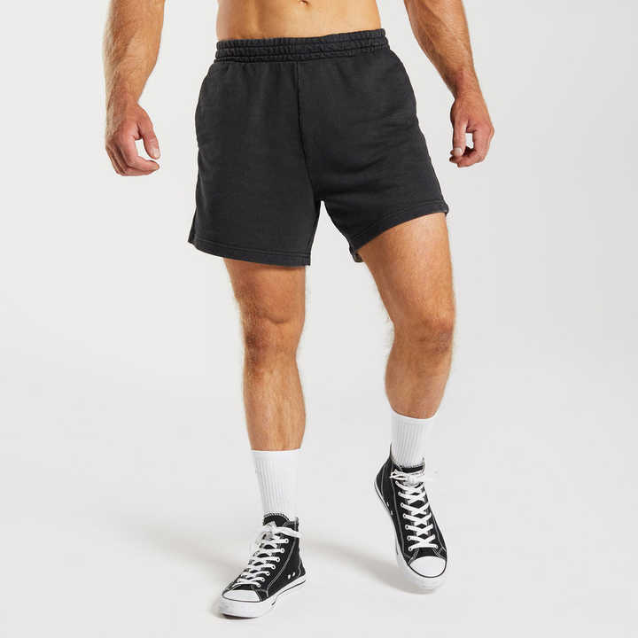 กางเกงขาสั้นตาข่ายผ้าฟลีซสำหรับผู้ชายกางเกงขาสั้นสำหรับซักแบบตาข่ายผ้าฟลีซซีดจางใส่แดดโลโก้แบบวินเทจออกแบบได้ตามต้องการ