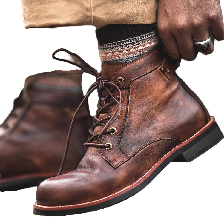 รองเท้าบูทข้อเท้าผู้ชายสไตล์วินเทจพร้อมโลโก้สั่งทำ รองรับการขายแบบดรอปชิปปิ้ง ไซส์ใหญ่ ทรงหุ้มข้อสูง แฟชั่นพื้นหนา สำหรับฤดูใบไม้ร่วง/ฤดูหนาว