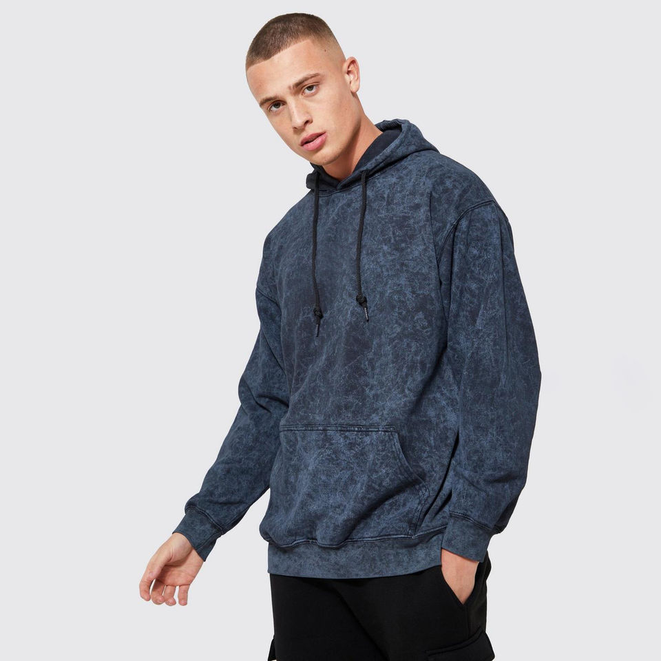 เสื้อฮู้ดผ้าย้อมสีพื้นสำหรับผู้ชายผ้าฝ้าย100% ทรงสลิมฟิตสำหรับฤดูหนาวกำหนดโลโก้ได้เอง