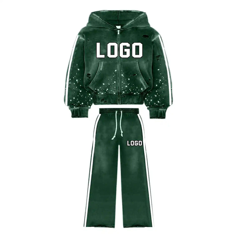 ชุดวอร์มผู้ชายแบบมีฮู้ดและกางเกงขายาวทรงบาน สไตล์ลำลอง พิมพ์โลโก้ได้ตามต้องการ ผ้าหนานุ่ม ใส่สบาย