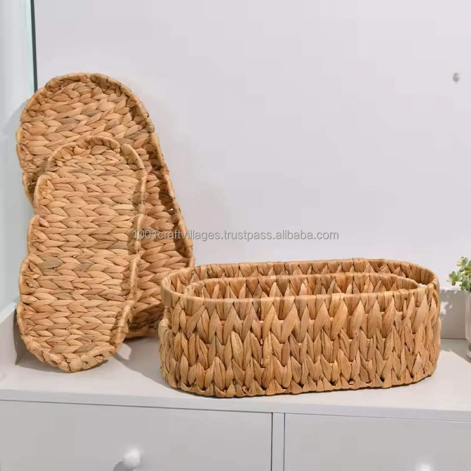 ถาดผักตบชวาออกแบบโลโก้ได้ตามต้องการถาดตกแต่งเป็นมิตรต่อสิ่งแวดล้อมทำมือสำหรับโรงแรมรีสอร์ททนทานเวียดนาม
