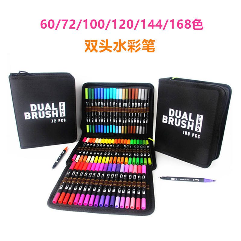 ชุดปากกามาร์คเกอร์สีน้ำแบบหัวคู่ ปลายพู่กันนุ่มและปลายเข็ม สำหรับวาดภาพ พร้อมกระเป๋าผ้าใบ พิมพ์โลโก้ได้