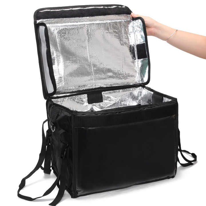 กระเป๋าส่งอาหารแบบกันน้ำพิมพ์โลโก้ได้ กระเป๋าเป้สะพายหลังขนาดใหญ่สำหรับมอเตอร์ไซค์ กล่องเก็บความเย็นแบบมีฉนวน กระเป๋าเก็บความเย็นสำหรับส่งอาหาร