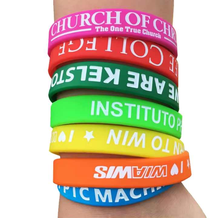 สายรัดข้อมือซิลิโคนกันน้ำพิมพ์โลโก้ตามสั่ง สำหรับงานแต่งงานและสร้างแบรนด์