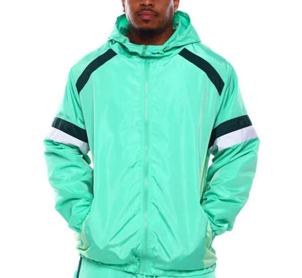 ชุดวอร์มกันลมน้ำหนักเบาผ้าโพลีเอสเตอร์พิมพ์โลโก้ได้ตามต้องการสำหรับผู้ชาย แบบมีฮู้ดเข้ารูปทรงสลิม เหมาะสำหรับกิจกรรมกลางแจ้ง