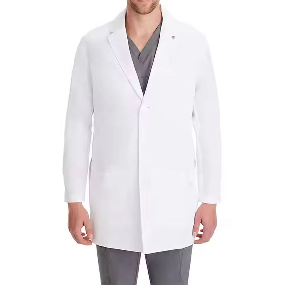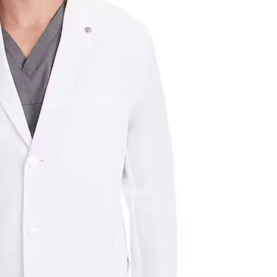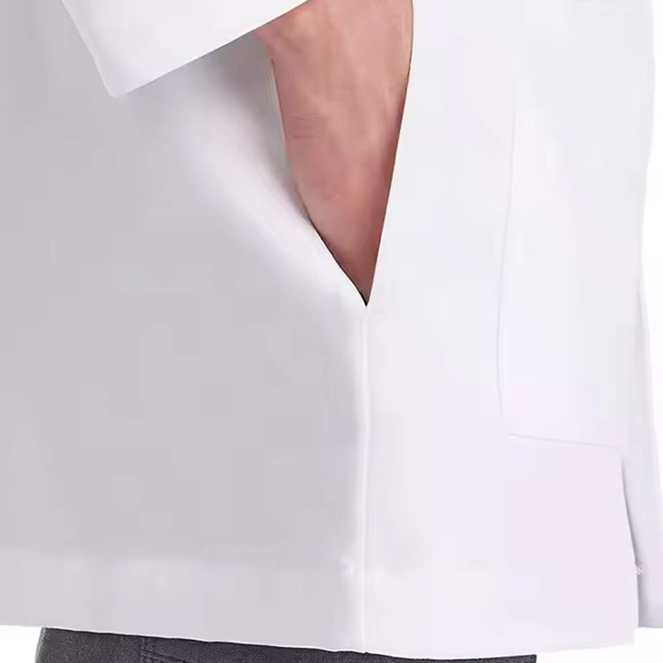 ชุดยูนิฟอร์มพยาบาลสีขาวพร้อมโลโก้แบบกำหนดเอง เสื้อกาวน์แพทย์ ชุดทำงานแพทย์และพยาบาลสำหรับโรงพยาบาล ชุดคลุมทำงานแบบ unisex