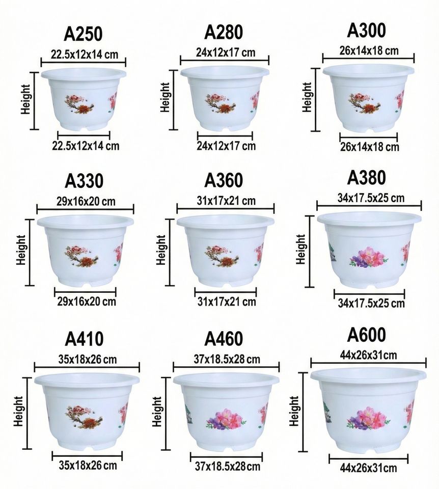 กระถางปลูกต้นไม้พลาสติกสีขาวพิมพ์โลโก้ได้ วัสดุ PP สำหรับสวน บอนไซ ขนาด A360 กันน้ำ