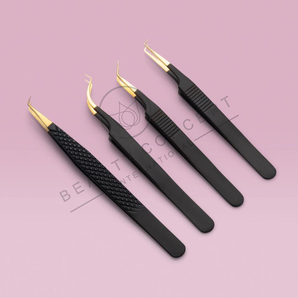 ชุดแหนบต่อขนตาพลาสม่าสีทองคุณภาพสูงพร้อมโลโก้สั่งทำได้ ขายส่ง แหนบต่อขนตาแบบวอลุ่ม ทำจากสแตนเลส