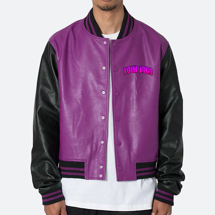 เสื้อแจ็คเก็ตเบสบอลแบบมีโลโก้สั่งทำได้ ขายส่ง เสื้อแจ็คเก็ตวาร์ซิตี้ผู้ชาย แขนเสื้อหนังเทียม ดีไซน์ด้านหน้า ผ้าโพลีเอสเตอร์/คอตตอน เสื้อโค้ทลำลอง