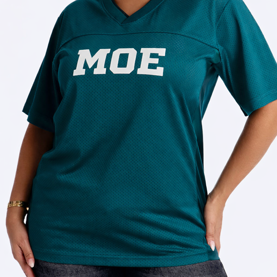 เสื้อยืดเจอร์ซีย์อเมริกันฟุตบอลผู้หญิงไซส์ใหญ่ สกรีนโลโก้ตามสั่ง ขายส่ง OEM ระบายอากาศได้ดี คอวี เสื้อผ้ากีฬา สตรีทแวร์