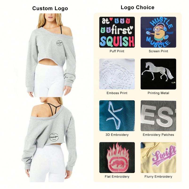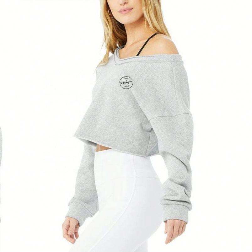 เสื้อสเวตเตอร์แบบสวมหัวเปิดไหล่สำหรับผู้หญิงเสื้อครอปคอตตอนทรงโอเวอร์ไซส์ผ้านิ่มออกแบบโลโก้ได้ตามต้องการ