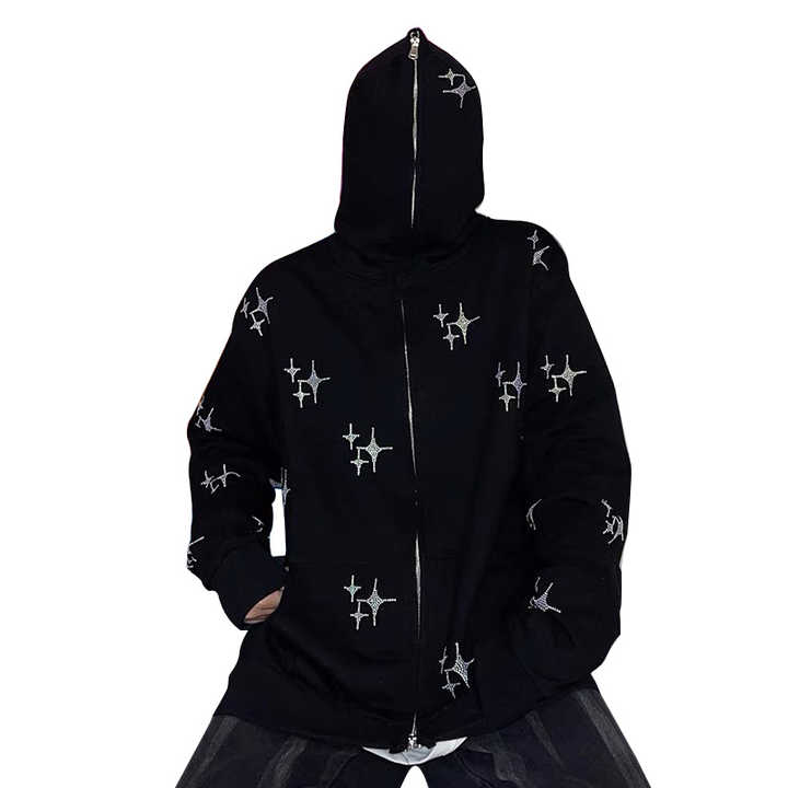Custom Logo Wholesale Solid Winter Hooded Full Zip up Men's Blank Rhinestone Sweater Jacket