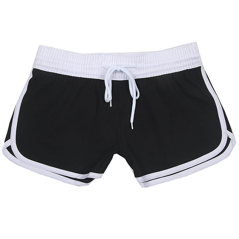 กางเกงขาสั้นว่ายน้ำพิมพ์ลายสีดำสำหรับผู้หญิงขายส่งพร้อมโลโก้สั่งทำ