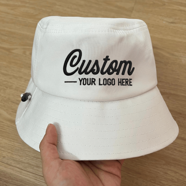 หมวกบักเก็ตปีกกว้างผ้าฝ้ายหลากสี พิมพ์โลโก้ได้ ระบายอากาศ กันแดด พับได้ ใช้กลางแจ้ง 男女兼用 พร้อมเชือก ขายส่ง