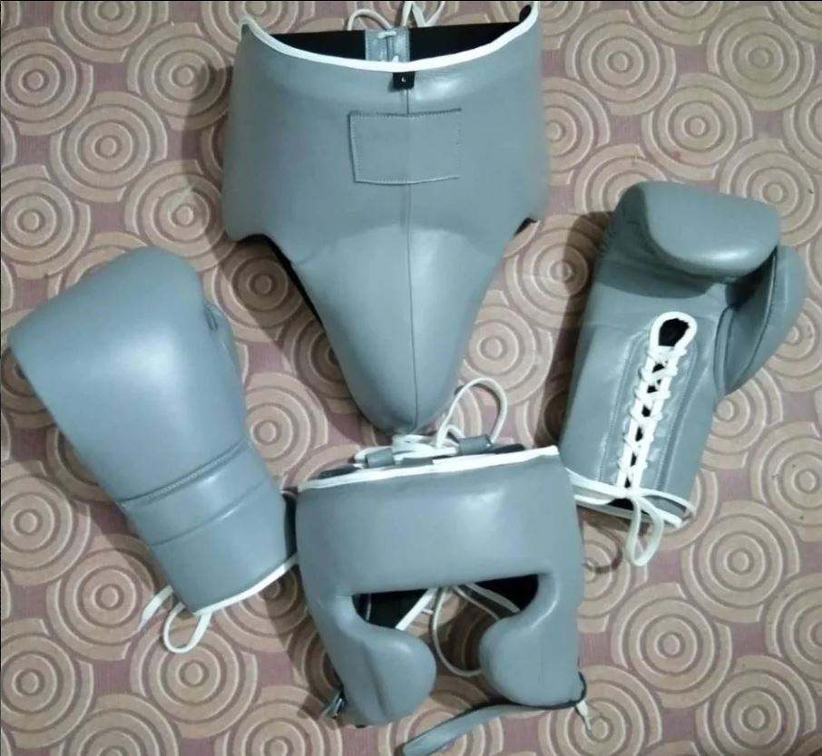 ชุดอุปกรณ์ป้องกันศีรษะและขาสำหรับฝึกซ้อมกลางแจ้ง พร้อมถุงมือชกมวยหนังวัวแท้แบบมืออาชีพ กันน้ำ ปิดด้วยแถบตีนตุ๊กแก พร้อมโลโก้สั่งทำพิเศษ