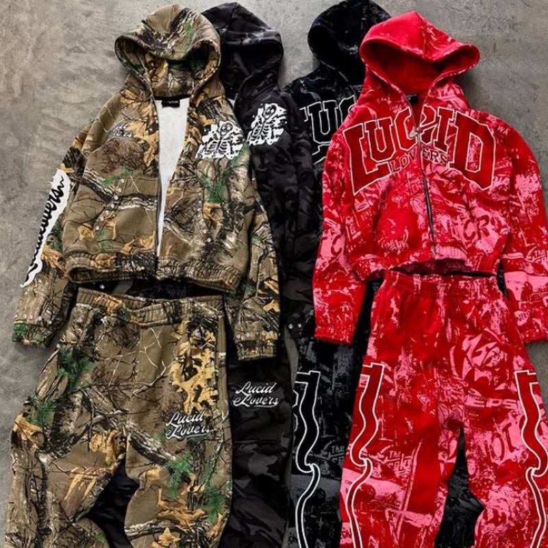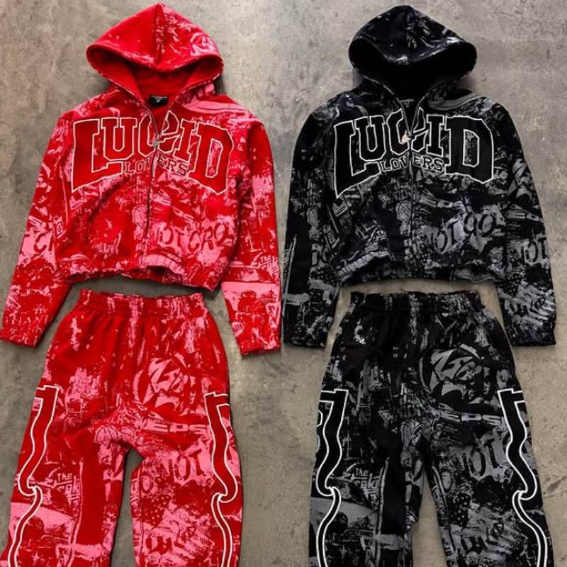 ชุดวอร์มลำลองสำหรับฤดูหนาว พิมพ์โลโก้ได้ ชุดกีฬาเท่ๆ เสื้อฮู้ดและกางเกงขายาว แบบ unisex ระบายอากาศได้ดี ผ้าคอตตอน 100% 2 ชิ้น