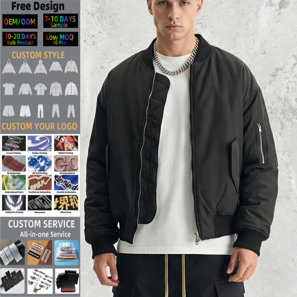 เสื้อโค้ททรงบ็อกซี่แบบครอปสำหรับผู้ชาย แฟชั่นฤดูหนาว โลโก้สั่งทำได้ กันน้ำ คอตั้ง แจ็คเก็ตบอมเบอร์ ปิดซิป สไตล์ลำลองสำหรับฤดูใบไม้ร่วง