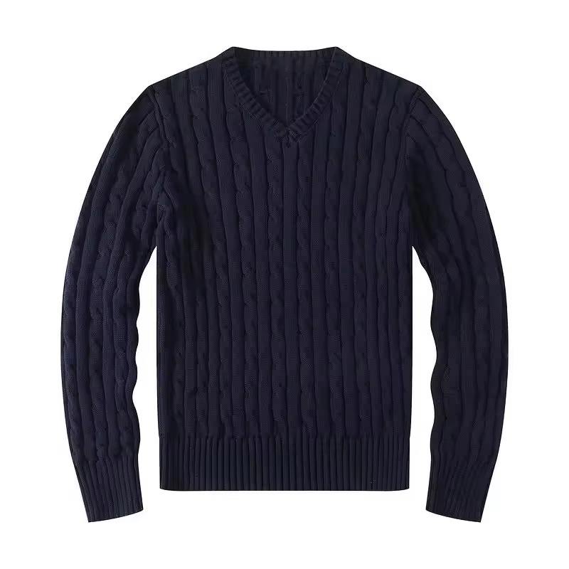 เสื้อไหมพรมคอวี แขนยาว ปักลาย แฟชั่นฤดูหนาวลำลองสำหรับผู้หญิง โลโก้แบบกำหนดเอง ผ้าถักลายเคเบิ้ล ป้องกันการยับ