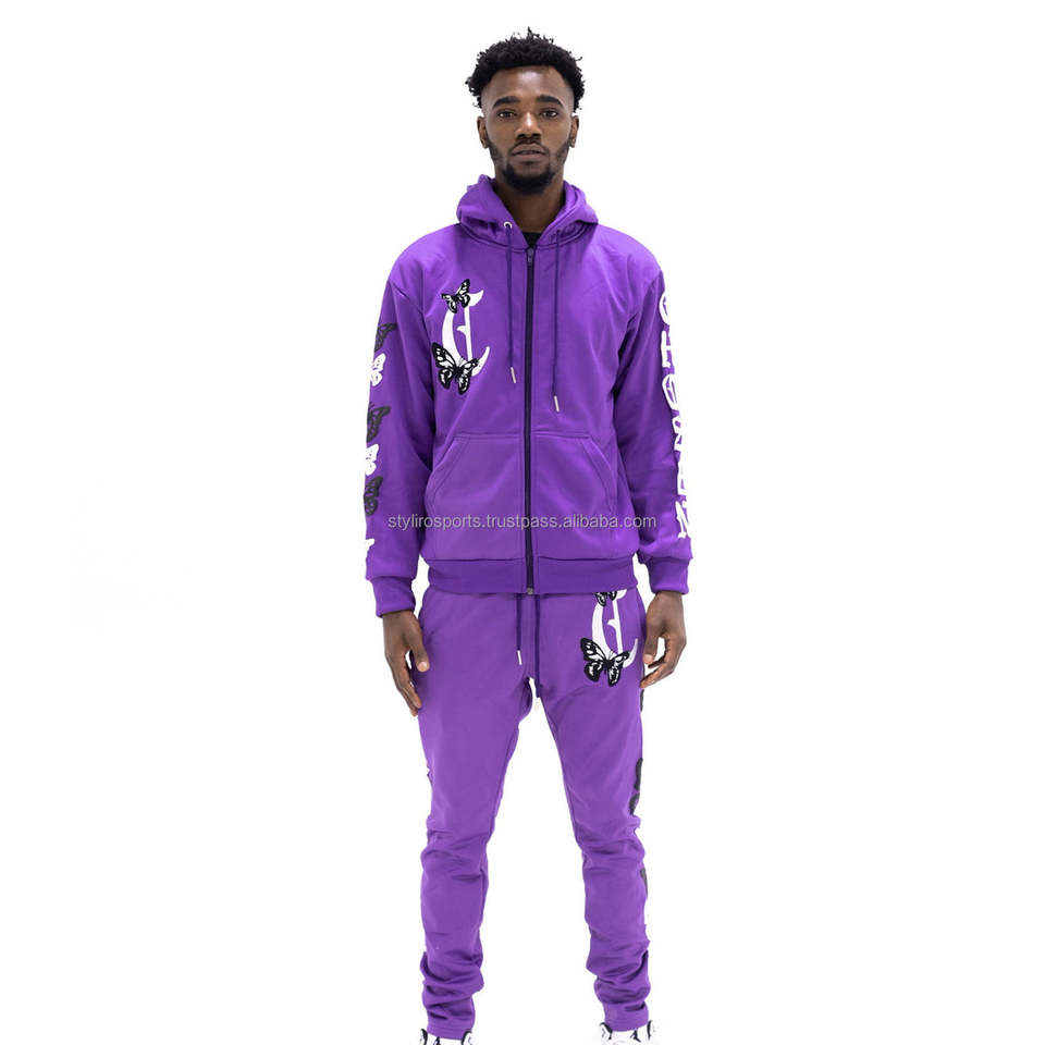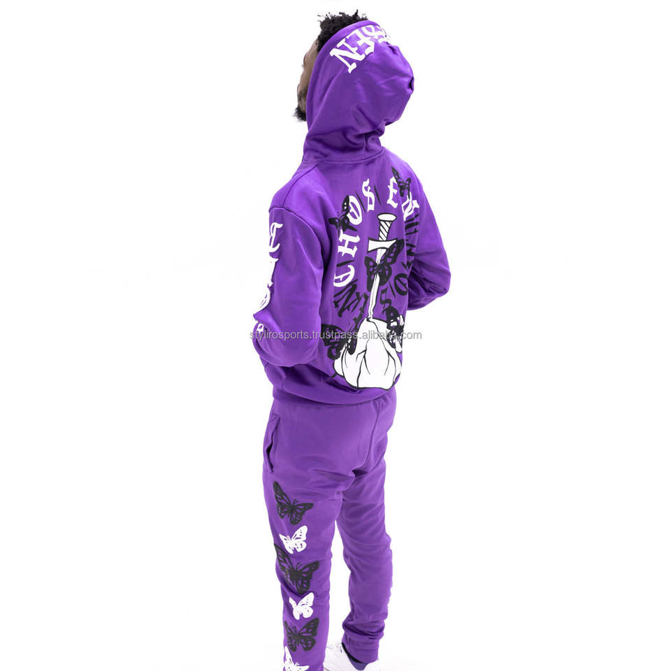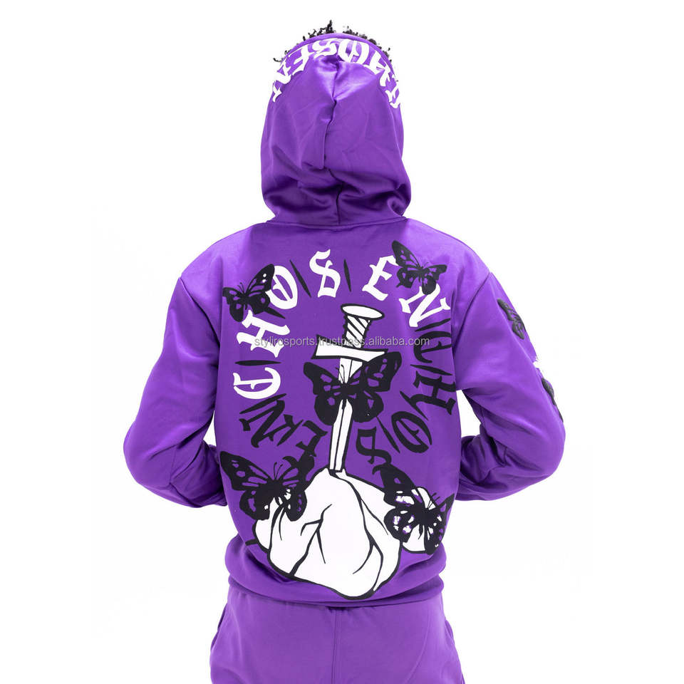 ชุดวอร์มผ้าฝ้ายโอเวอร์ไซส์แบบมีฮู้ดสำหรับผู้ชาย พิมพ์โลโก้ได้ตามต้องการ ทรงปกติ พร้อมชุดจ็อกกิ้ง