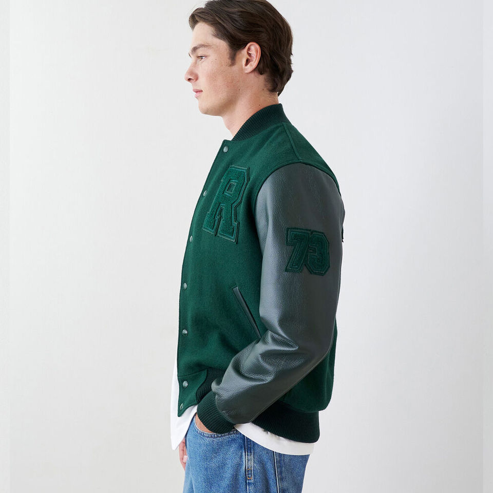 แจ็กเก็ตบอมเบอร์สำหรับผู้ชายเสื้อแจ็คเก็ตแขนหนังแบบลำลองออกแบบโลโก้ได้ตามต้องการสำหรับฤดูหนาว