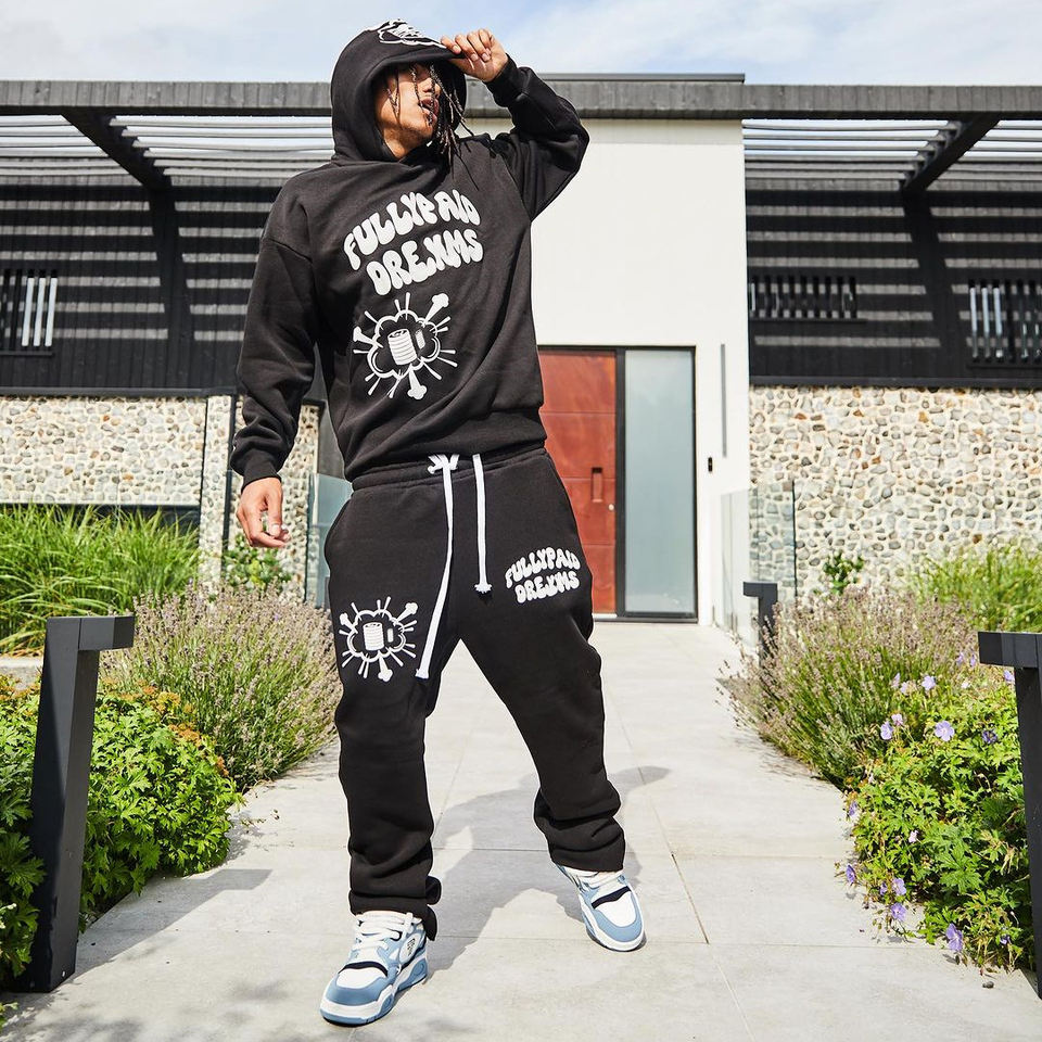 ชุดเซ็ตเสื้อฮู้ดดี้และกางเกงวอร์มขาบานทรงสแต็ค ผ้าฝ้ายเฟรนช์เทอร์รี่ 100% หนานุ่มพิเศษสำหรับฤดูหนาว พร้อมโลโก้แบบกำหนดเอง