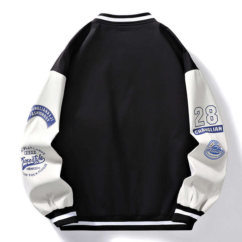 แจ็คเก็ตเบสบอลสไตล์วาร์ซิตี้ คอตั้ง ปักโลโก้เองได้ ลายปักแบบฮิปฮอป สไตล์ลำลอง สตรีทแฟชั่น ทรงหลวม เรียบง่าย