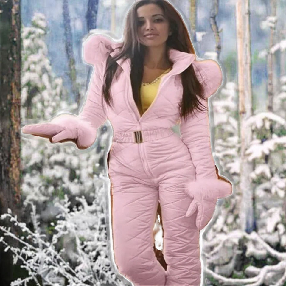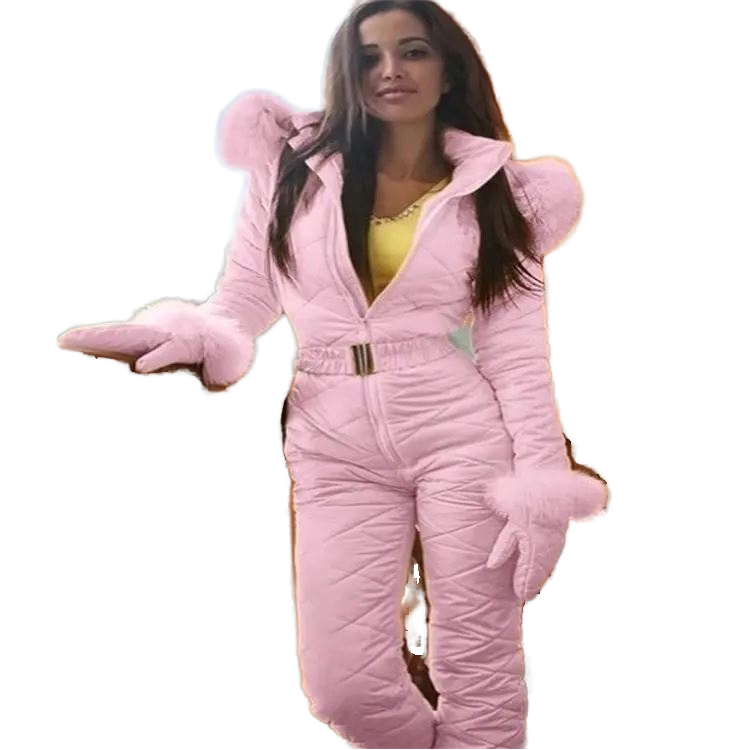 ชุดสกีผู้หญิงแฟชั่นฤดูหนาวแบบมีซิปพร้อมฮู้ดบุขนสัตว์เทคโนโลยีพิเศษสำหรับกีฬากลางแจ้ง รับสกรีนโลโก้ได้