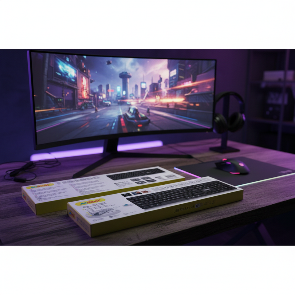 ชุดคีย์บอร์ดและเมาส์เกมมิ่งไร้สายพร้อมโลโก้แบบกำหนดเอง คีย์บอร์ดแบบมีสาย 104 ปุ่ม ระบบกลไกแบบกรรไกร ขนาด 11 นิ้ว รุ่นภาษาอังกฤษ Q-K21