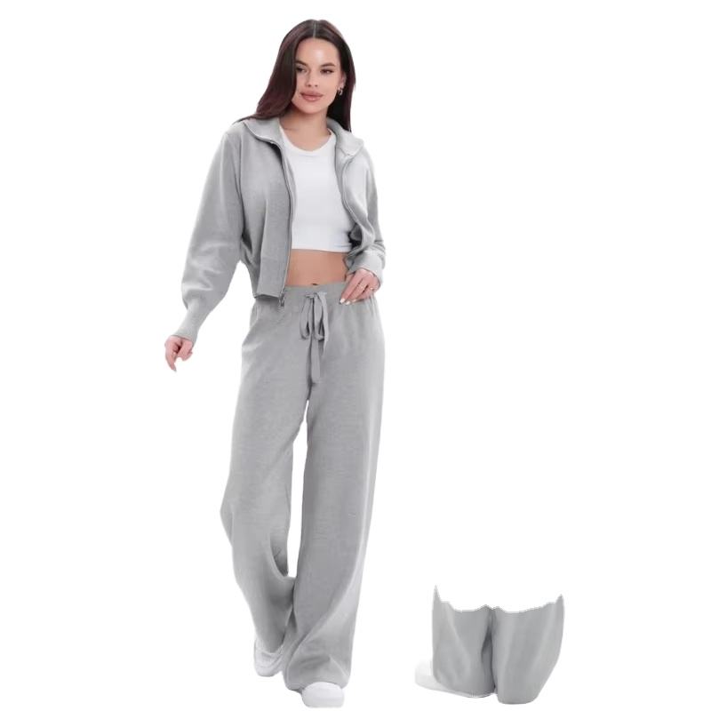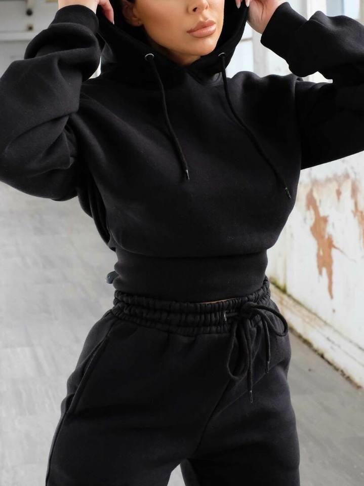ชุดเซ็ตเสื้อครอปและกางเกงวอร์มพิมพ์ลายโลโก้ตามสั่งสำหรับฤดูหนาว ผู้หญิง เอวสูง ขายส่งแบบ OEM