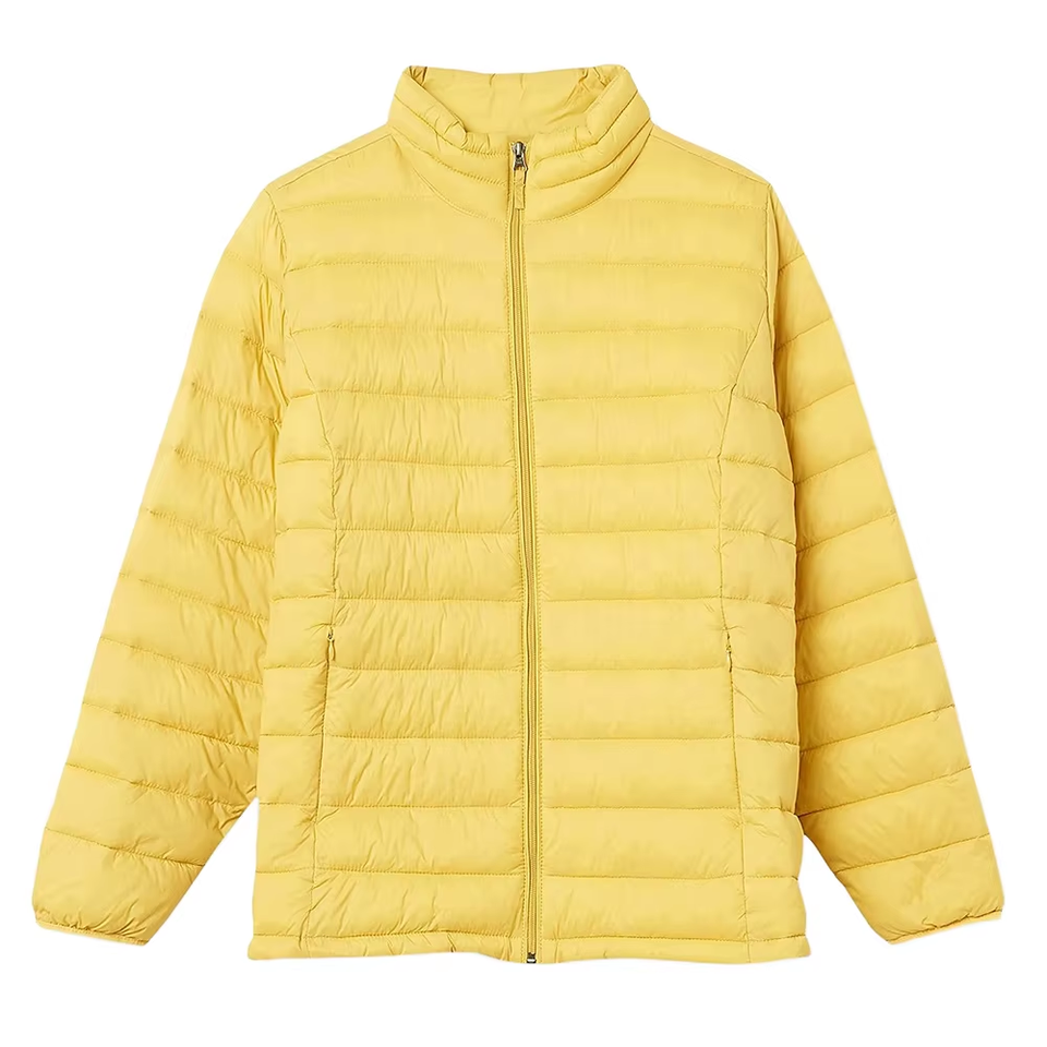แจ็กเก็ตขนเป็ดสำหรับผู้หญิงผ้าแคนวาสบุนวมน้ำหนักเบาเสื้อแจ็คเก็ตแฟชั่นสำหรับฤดูหนาวโลโก้ออกแบบได้ตามต้องการ