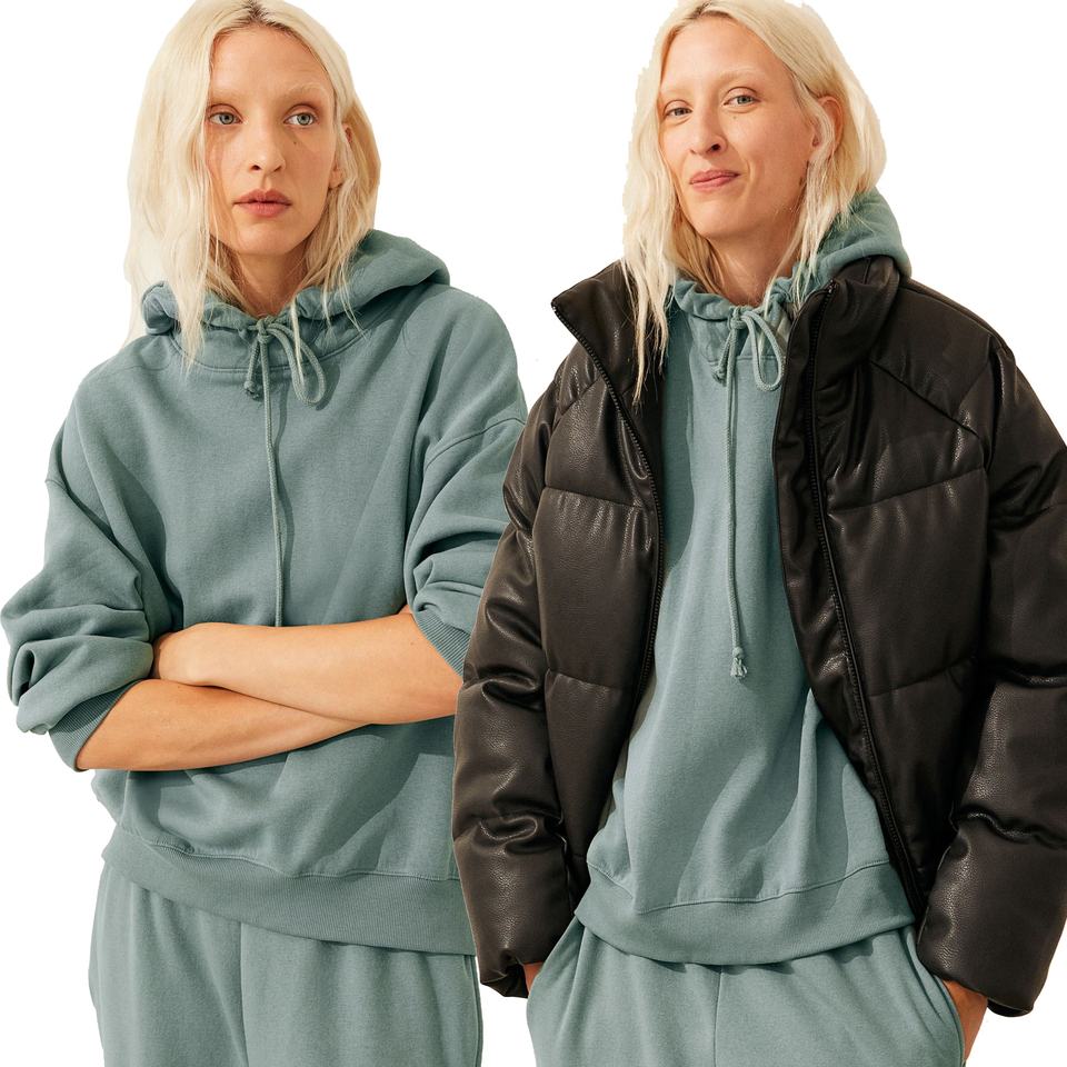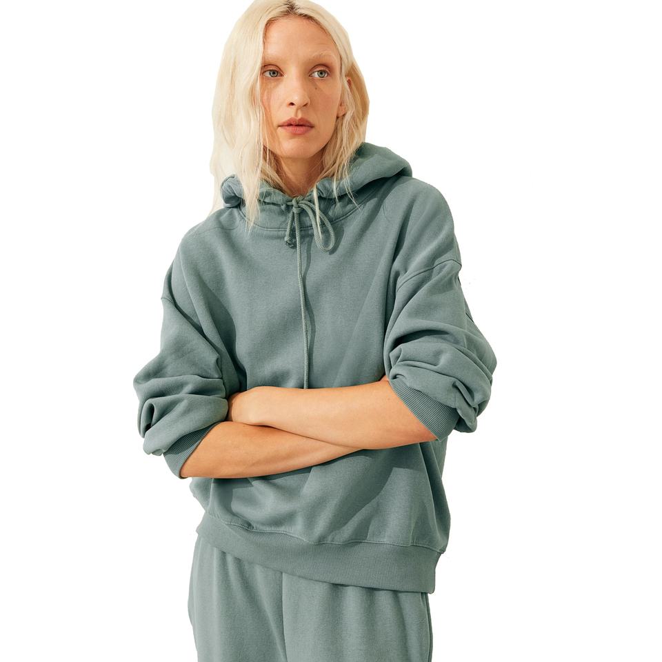 เสื้อกันหนาวมีฮู้ดสำหรับผู้หญิงเสื้อฮู้ดแบบสวมหัวโอเวอร์ไซส์ผ้าคอตตอนออร์แกนิคผ้าถักเป็นมิตรกับสิ่งแวดล้อมโลโก้ออกแบบได้ตามต้องการ