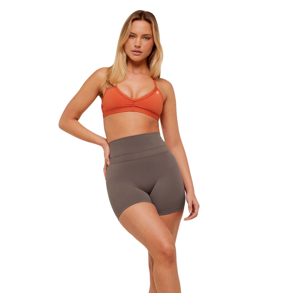 เสื้อชั้นในกีฬาผู้หญิงสีส้มอ่อนแบบมินิมอล โลโก้สั่งทำได้ ผ้าไนลอนผสมสแปนเด็กซ์ รองรับน้ำหนักเบา สายรัดแบบเส้นเล็ก เหมาะสำหรับโยคะ ออกกำลังกาย ฟิตเนส สีส้มสนิม