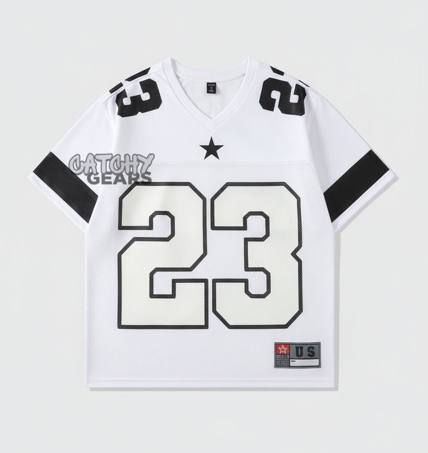 ตำแหน่งโลโก้:ด้านหน้า, ด้านหลัง, แขนเสื้อด้านซ้าย, แขนเสื้อด้านขวา, ขอบล่าง, หลังคอ