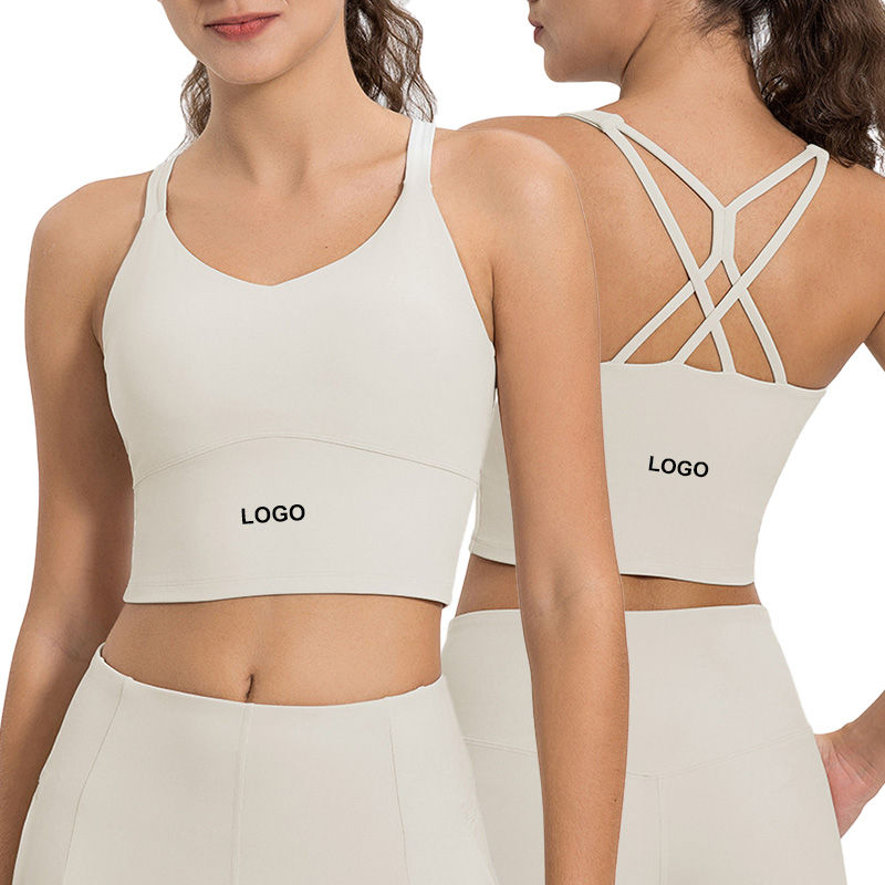 เสื้อชั้นในกีฬาผู้หญิงพิมพ์โลโก้ได้ ยืดได้ 4 ทิศทาง เนื้อผ้านุ่ม ระบายอากาศ แห้งเร็ว ผลิตจากไนลอนและสแปนเด็กซ์ เหมาะสำหรับออกกำลังกาย ฟิตเนส โยคะ แบบสองชั้น