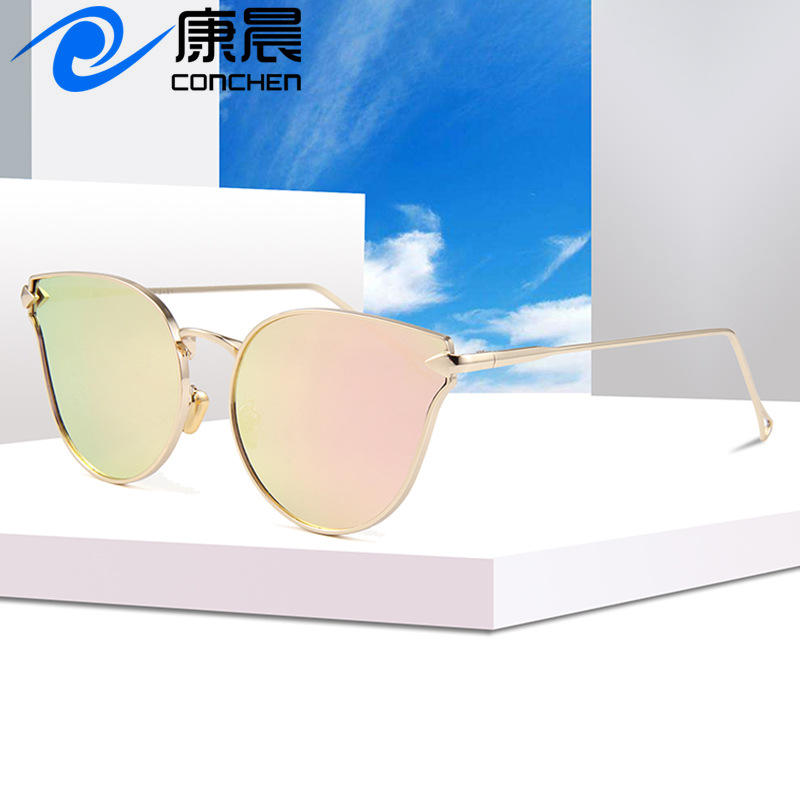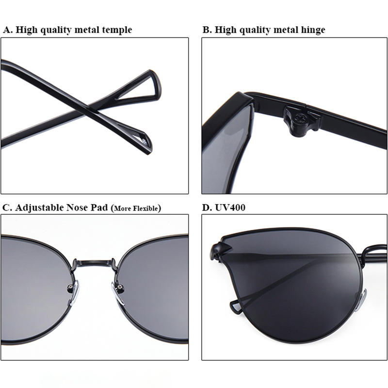 แว่นกันแดดผู้หญิงโลโก้แบบกำหนดเอง เลนส์ PC ป้องกันรังสียูวี 400 ทรงแคทอาย แฟชั่นสำหรับการเดินทาง ป้องกันแสงแดด สีทอง เงิน ดำ