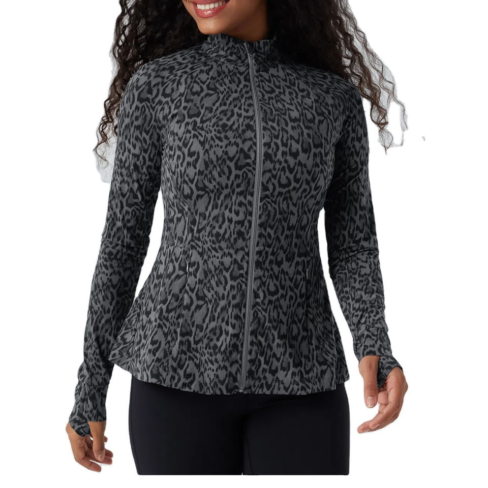 เสื้อโยคะผู้หญิงพิมพ์โลโก้ได้ ทรงปกติ ซิปหน้า ระบายอากาศได้ดี ผลิตจากผ้าสแปนเด็กซ์/โพลีเอสเตอร์ ป้องกันแบคทีเรีย เหมาะสำหรับออกกำลังกาย แห้งเร็ว