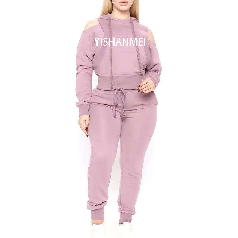 ชุดวอร์มผู้หญิง2ชิ้นผ้ายีนส์ซักกรดมีฮู้ดชุดวิ่งออกกำลังกายผ้าฝ้าย100% ฤดูหนาวพิมพ์ลายสกรีนโลโก้แบบกำหนดเอง