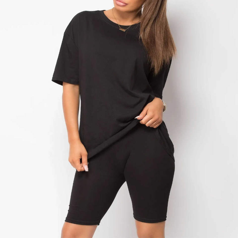 ชุดเสื้อยืดและกางเกงขาสั้นผู้หญิง
