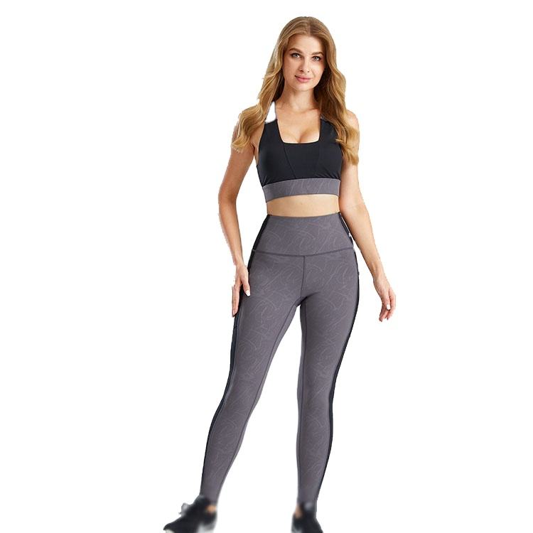 ชุดโยคะไร้ตะเข็บสำหรับผู้หญิงพร้อมโลโก้แบบกำหนดเอง กางเกงออกกำลังกายเอวสูง ชุดออกกำลังกาย ชุดชั้นในกีฬาและกางเกงโยคะ