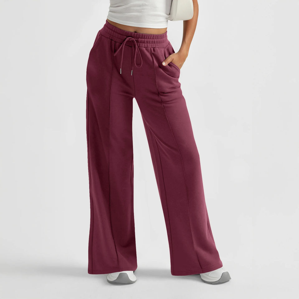 กางเกงขาบานเอวสูงมีจีบกางเกงวิ่งกิจกรรมกลางแจ้งออกแบบโลโก้ได้ตามต้องการ