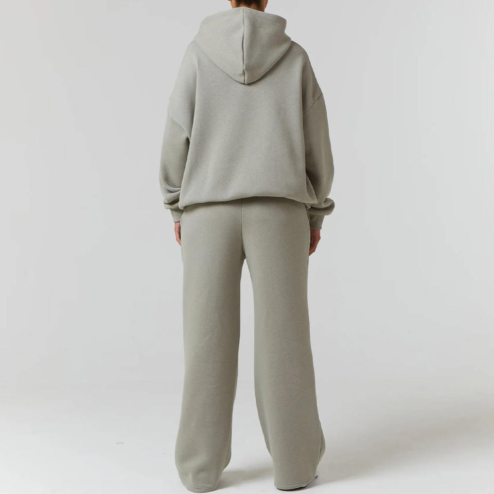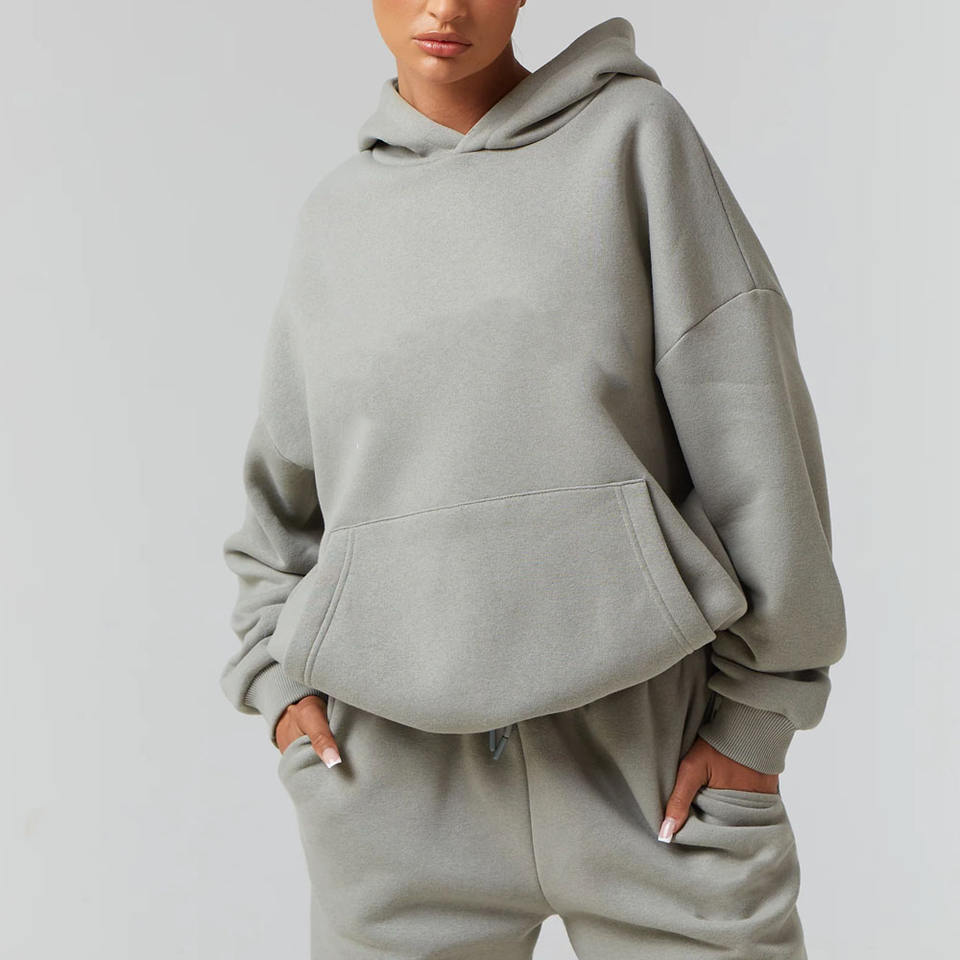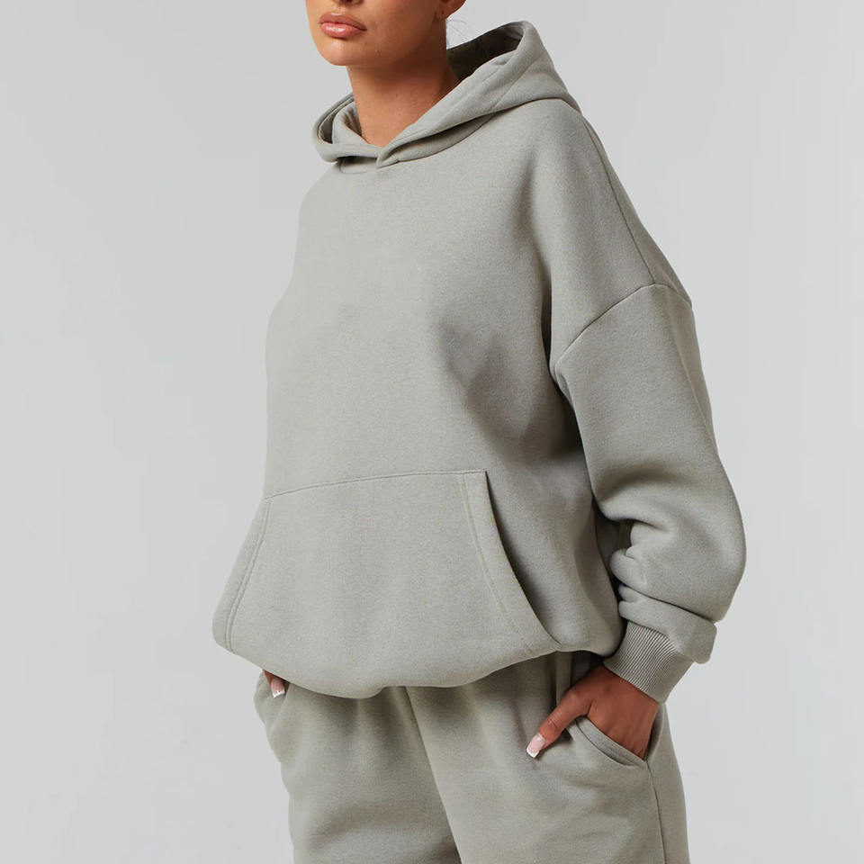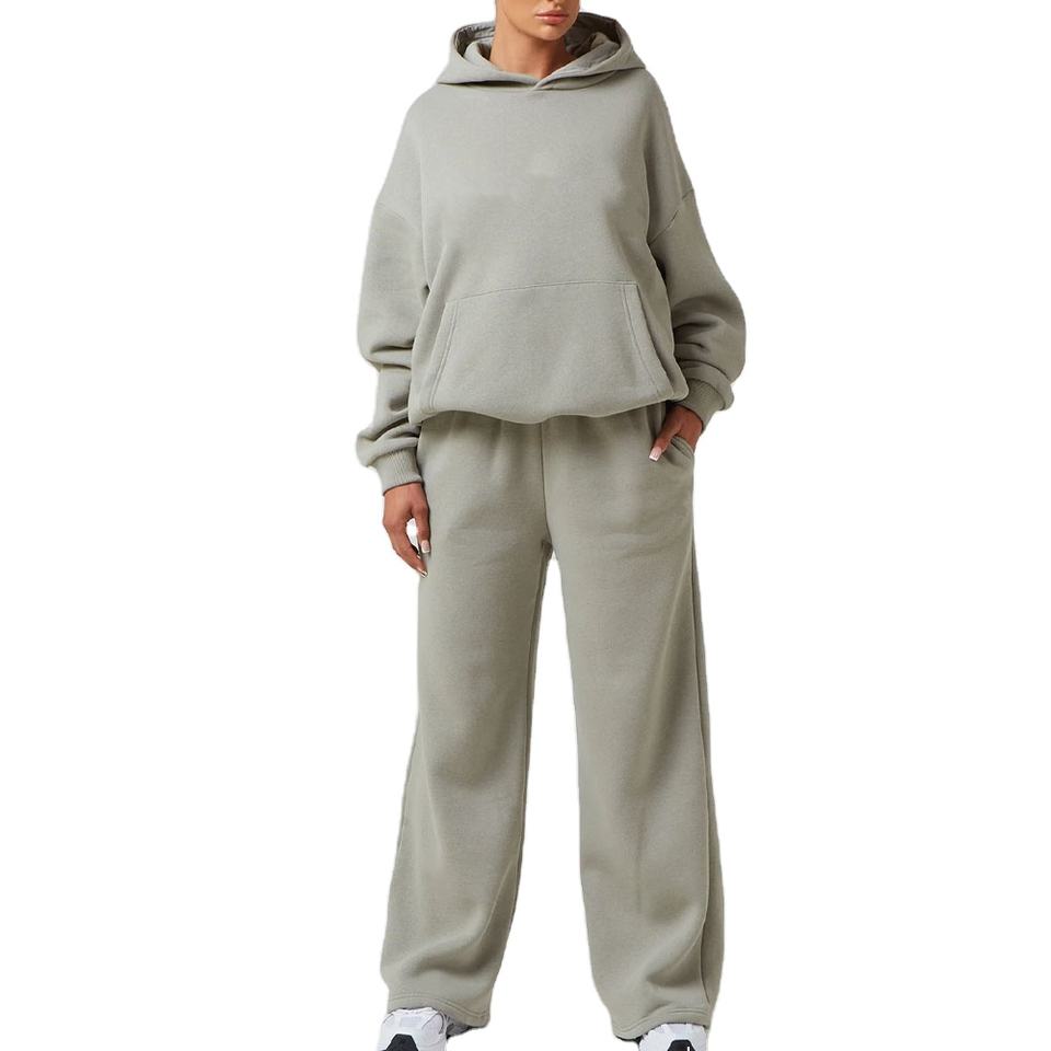 ชุดเซ็ตฮู้ดดี้และกางเกงวอร์มผู้หญิง พิมพ์โลโก้ได้ ผ้าฝ้าย 100% สไตล์สตรีทแวร์ สำหรับฤดูหนาว