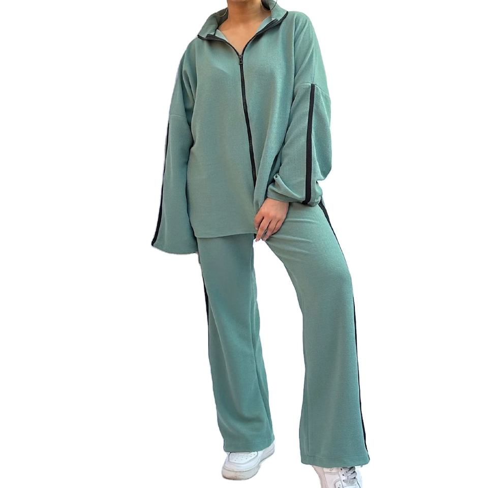 ชุดเซ็ตเสื้อฮู้ดและกางเกงวอร์มผ้าฟลีซสำหรับผู้หญิง สไตล์สตรีทแวร์ฤดูหนาว พร้อมโลโก้สั่งทำ ผ้าฝ้าย 100%