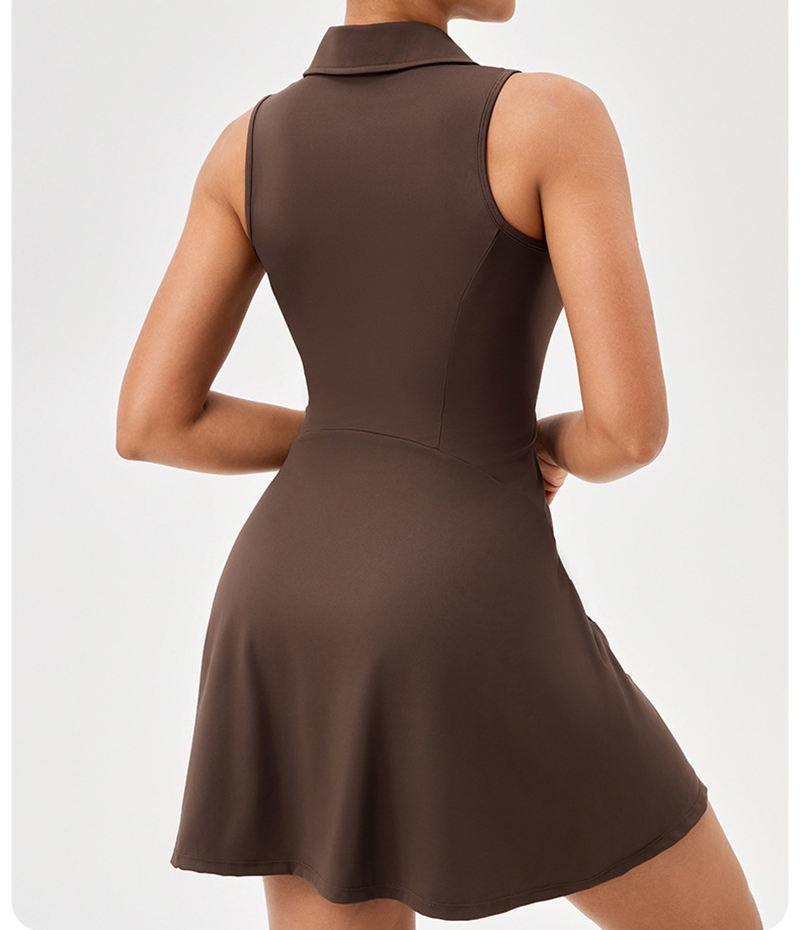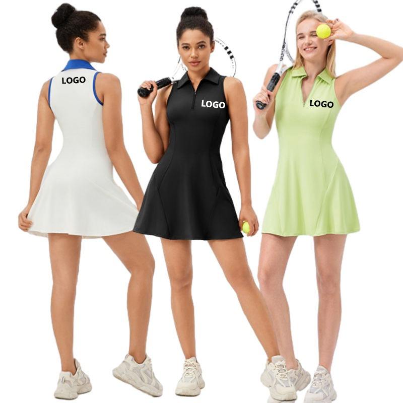 Custom Logo Women's Zip up Polo Tennis Golf Dresses With Built in Shorts Sleeveless Workout Athletic Dresses