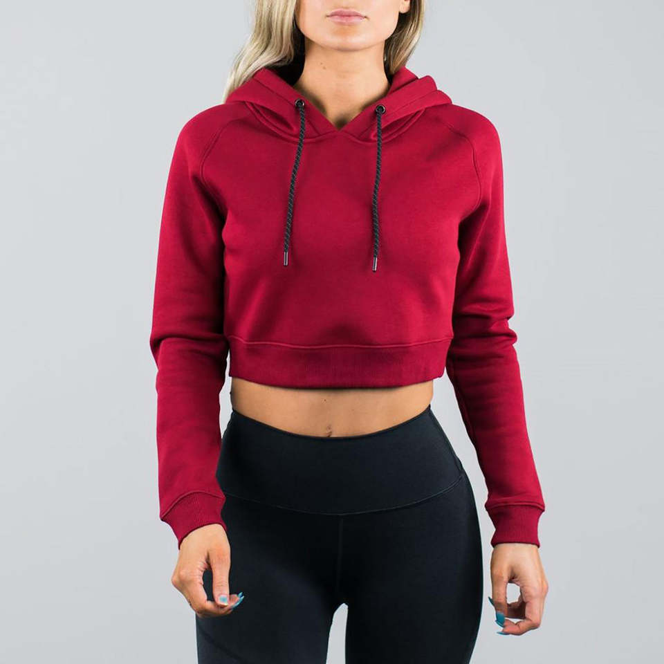 เสื้อมีฮู้ดของผู้หญิงเสื้อครอปแบบเรียบโลโก้ออกแบบได้ตามต้องการเสื้อผ้าแฟชั่นสำหรับเล่นยิมและเล่นโยคะ