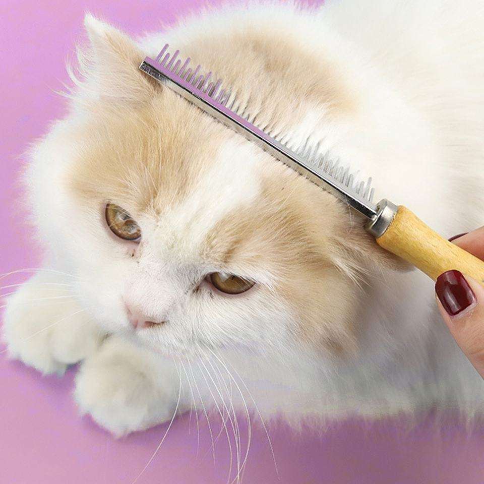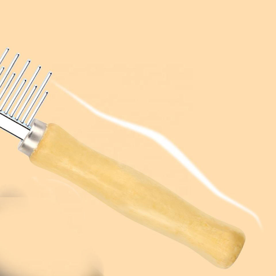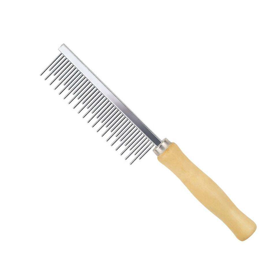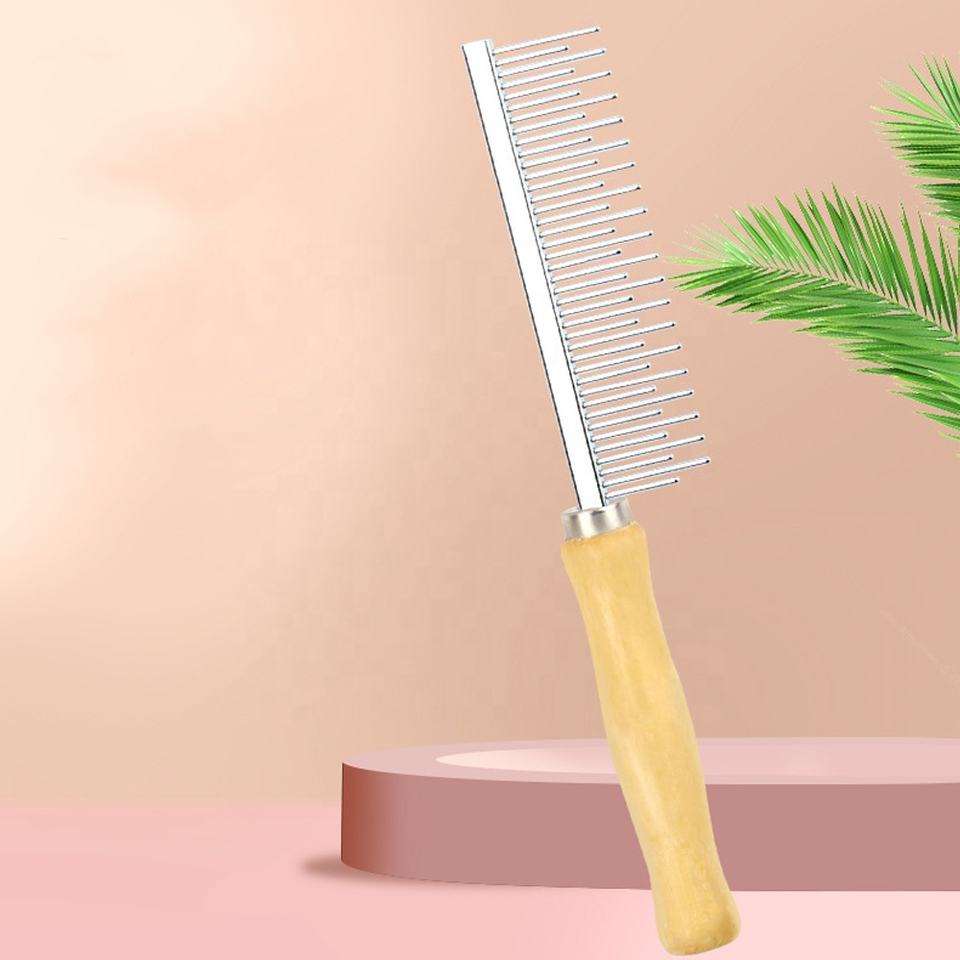 แปรงหวีขนสัตว์เลี้ยงแบบด้ามจับทำจากไม้หวีแต่งขนสัตว์เลี้ยงแบบมืออาชีพทำจากสเตนเลสสำหรับสุนัขแมว