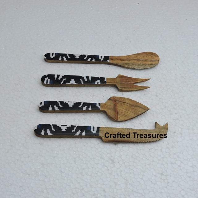 ชุดเครื่องตัดชีสไม้พร้อมพิมพ์เคลือบบนมือจับชุดสี่ชิ้นในครัวโรงแรมชีสเครื่องมือตัดชีสโลโก้ที่กำหนดเอง